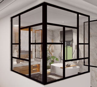 Le coin permet de donner plus de caractère à votre verrière et de maximiser l’apport de lumière dans une pièce idéalement une cuisine, avec une hauteur maximale de 2500 mm .A poser sur un muret ou toute hauteur du sol au plafond.